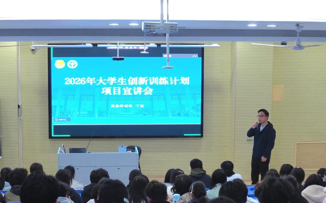 活动简介:大学生创新训练计划项目宣讲会由丁胜老师主持,聚焦大创项目申报全流程,为同学们提供政策解读、经验分享与现场答疑。活动旨在激发学生创新潜能,助力项目筹备,推动我校科创育人工作走深走实。