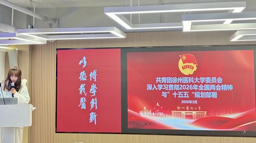 随后,校学生会发展部部长刘恬艺结合医学生成长需求,领学2026年全国两会精神与“十五五”规划部署。