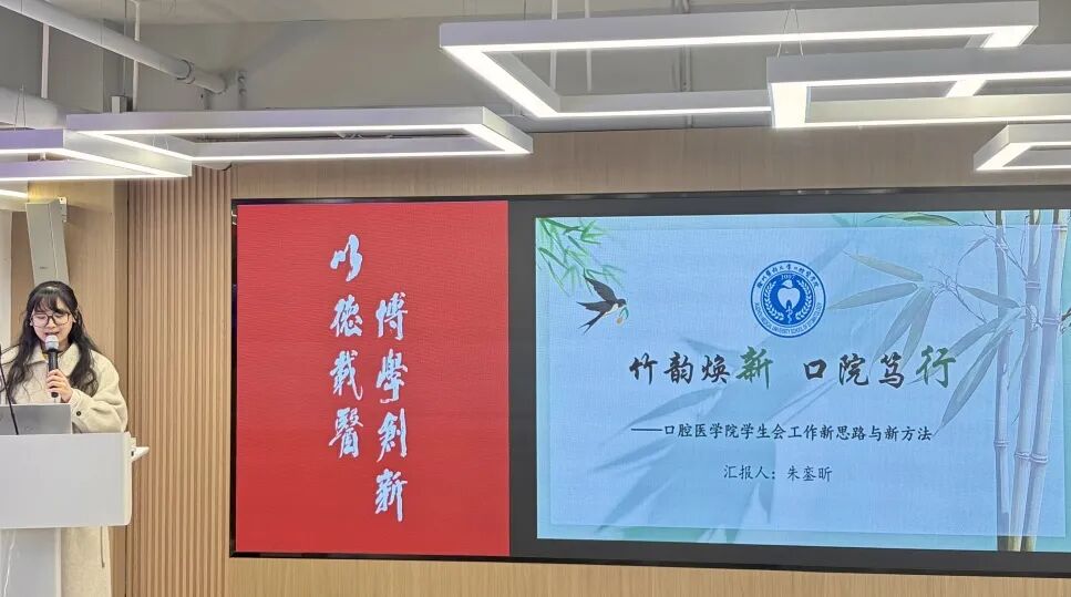 口腔医学院以“竹韵焕新 口院笃行”为主题,从组织建设、特色活动、成长服务三个维度,展示了学院以“制度化+精细化+全员化”强组织根基、以“专业+多元”做活特色活动、以“全维度+点对点”做优成长服务的工作成效,彰显专业特色与学子风采。