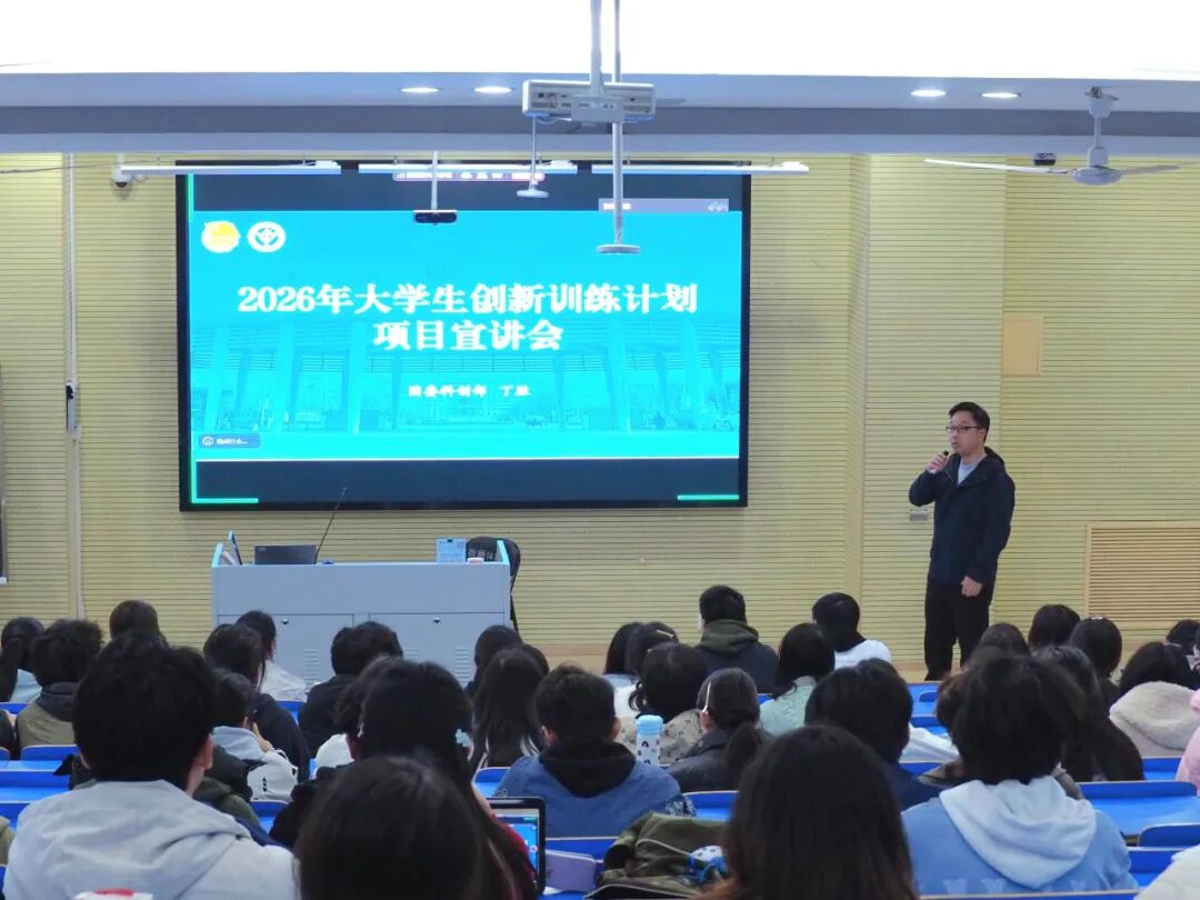 3月26日晚,2026年大学生创新训练计划项目宣讲会在主校区科技楼F1教室举办,本次活动由校团委科创部丁胜老师主讲。